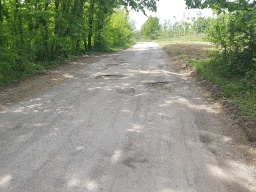 Inoltre la strada è piena si brecciolino che, se possibile, la rende ancor più pericolosa.